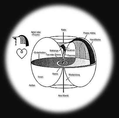 Figur 4: Das Diagramm der Kontinuierlichen Schöpfung enthält verschiedene Metaphern aus verschiedenen spirituellen Traditionen, die das gleiche bezeichnen. Nur einige Möglichkeiten sind hier aufgeführt. Links: Die Handwurzeln zweier Hände können so gehalten werden, daß sie die Form des Herzens bilden und damit an den »Weg mit Herz« erinnern. Zurück.