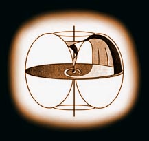 Mathematiker schlagen vor, Singularitäten formale mathematische Definitionen der Einheit als Torusschleife darzustellen. Torusschleifen sind einfache »Flechtkorb«-Muster oder ringförmige Windungen. Die einfachste Schleife ist auch die einfachste Torusschleife. Der Torus (die Krapfenform) selbst definiert also die primäre Unterscheidung zwischen Innen und Außen (s. Fig. 3) . Die Illustration der kontinuierlichen Schöpfung (s. Fig. 4) versucht zu zeigen, wie eine Spanne von spirituellen Metaphern verschiedener Traditionen in einem geometrischen Modell des höchsten Kontrasts von Ganzheit und Singularität miteinander in Einklang gebracht werden können. Es zeigt einige wenige der Namen, unter denen der eingewölbte Torus in verschiedenen Kulturen und spirituellen Traditionen bekannt ist. In diesem Modell bezieht sich die kontinuierliche Schöpfung auf die ununterbrochene Kette des Lebens: Same-Baum-Frucht/ Same-Baum-Frucht usw. Es stellt den reflexiven selbstorganisierenden Prozeß dar, der der natürliche Transformations- und Entfaltungsvorgang von jedem »Samen« (Singularität, Tao, Sonne) durch seinen »Baum« (Entfaltung, Flamme, Weltberg) in eine neue »Frucht« (Ganzheit, Hand, Welt) seiner Art ist. Es repräsentiert das generelle Prinzip der endlosen Fortpflanzung des Lebens durch das Leben, das das zyklische Modell von Singularität, Entfaltung und Ganzheit mit Inhalt füllt. Es gibt ebenso den Vers der Genesis (1:11) wieder, der in dem kabbalistischen Standardwerk Sohar zitiert wird und von einem »Fruchtbaum, der Früchte hervorbringt ..., deren Same im Innern ihrer selbst ist«, spricht.